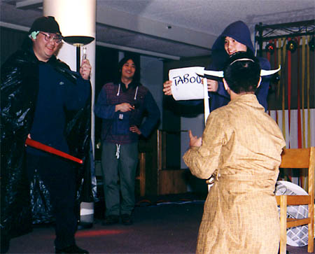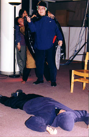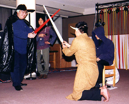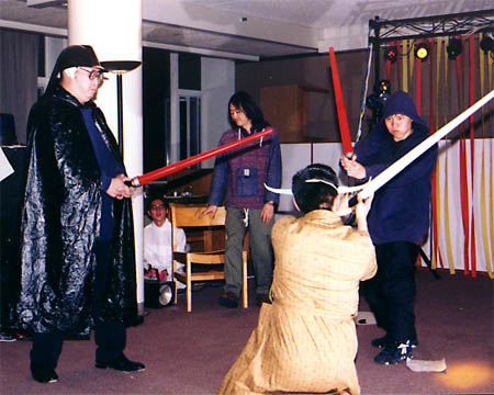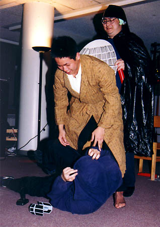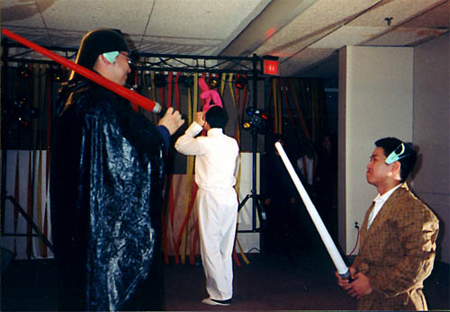 <EMP AND Y START FIGHTING, BUT EMP'S LIGHT SABER DOESN'T SEEM TO WORK>