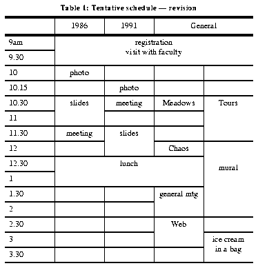 - 2:30 Presentation: Introduction to the Web -- Sharon Belville '85 and Gina Norman '86
