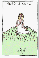 Hero of Cups: A girl with pale skin and golden hair, dressed in white,