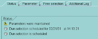 Result: The Schedule Selection and Print window closes. The Status box says that dunning selection is scheduled, as shown below.