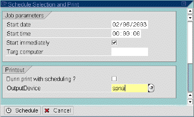 The Schedule Selection and Print window opens, shown below.