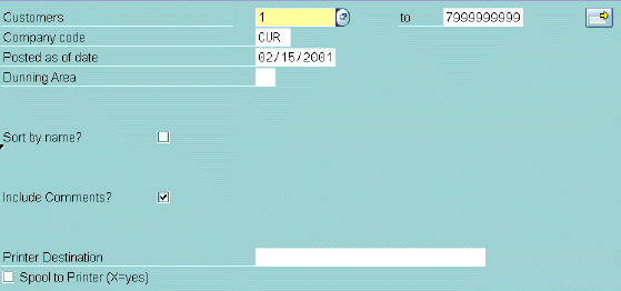 Dunning area (Leave Dunning Area blank to run for all dunning areas, or click on