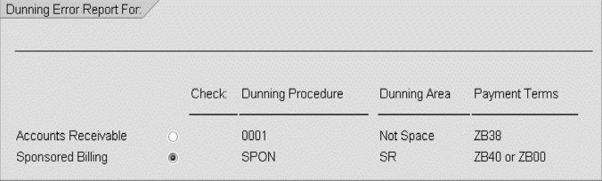Use this procedure to run a report listing sponsor billing dunning errors. The errors can be corrected from the report screen.