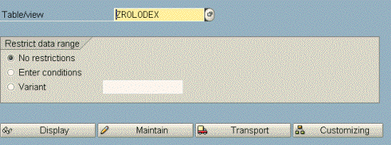 To display (or maintain) the COEUS Rolodex table, click on Display (or Maintain), as shown above.