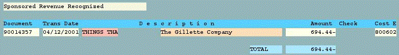 800602 Sponsored Revenue Recognized is a new G/L Account