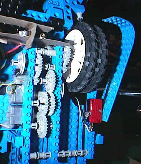 5) Drive wheels and gear train: This is all underneath the robot, and