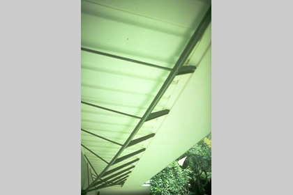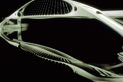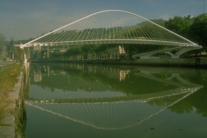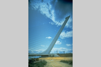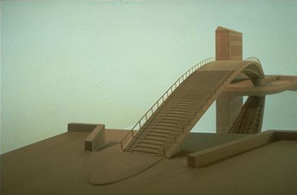 60. If we consider engineering as an art --as I believe it is-- and if we go back to a time when there was no difference between the art of architecture and that of engineering, as I suggested we do at the beginning of my first talk, then we can consider that it is in ourselves, and especially in the new generation, that a rebirth of art happens. It is not only our heritage but also the mother of heritage that we must translate into action through our capacity to make buildings, reinventing them each time. 61. I would like to begin my second talk by showing another small object that is done using my children's toys. This one expresses another way of putting things together, hanging the same stone as in the previous case, but in this case, the forces are working parallel to each other; they do not cross. So, it is like a game in which you discover that the weight of an object has the capacity to express something and that it all depends upon the ordering of the forces. 62. I have not found a better way to introduce you to these thoughts on construction than through my own experience, and, somewhat like an author writing his first book, one always gets a little autobiographical. 63. One of the first buildings I designed was a warehouse for steel. In this project, the problem was how to design the beams of the roof, and how to do them as light as possible. I was just coming out of the school of engineering, and it was a challenge for me to achieve this with something like twenty-eight kilograms of steel per square meter, and a span of thirty meters across. The beams were made of corrugated metal because it was light and could handle the shear forces of the roof which, in this case, were very small. The reason is that most of the beams are arched on top. It took a lot of time to investigate how to bolt together the two corrugated metal plates that make the beam. I wanted to create a construction that works as a spatial frame, capable of handling lateral wind forces when another corrugated metal for the roof is put in place. 64. I have recently designed a bridge for Venice, the Piazza Roma footbridge, and in this bridge, I used a type of beam that is very similar to the ones I used for the warehouse, but expressed in another way. If you look at the bridge, you find all the elements of a traditional Venetian bridge, including the embank- ment and staircases on both sides. But the bridge itself is a very shallow arch, as a result of using these beams. I thought it important to achieve a certain simplicity of expression in the bridge and therefore, the bridge is effectively done using only two beams and making its form a function of the form of the beams. As the beams become wider at the center, the bridge becomes wider too. The details of the embankment and its complementary staircase reinforce not only the expression of the embankment's mass, but also, the pull of the bridge. I did not want to use the lower part of the arch as a compression element; only the two lateral ones. The lower element is just for stability. 65. A very early experiment was for a balcony I had to add to an existing house. In the beginning, many of my works were very simple. The existing balcony was very small --something like three feet deep. I had to extend it, using the existing reinforce- ment, to a depth of some ten feet. It is interesting that, in order to preserve this reinforcement, I had to find a complementary structure to build underneath. This new structure works like two half arches that are tied together through a tensional member. It supports a slab of concrete that cantilevers in a very daring way, about five feet from the end of this structure. This early experiment was the precedent for another work. A year later I had an opportunity to recreate this idea as a type of bridge in the Stadelhofen station of Zurich: a cantilever that is close to a wall. 66. In my opinion, the consideration of the static properties of a bridge is very important. The bridge's static equilibrium is probably its most essential part, so that if we think of a bridge like a body, this static condition is analogous to the heart. Of course, the body has other parts; in a bridge you have other properties. The central part of the whole problem is certainly very much about resolving the problem of how to bring the forces from one shore to another. 67. In the station of Stadelhofen bridges are an integral part of architecture and there are several types of bridges in addition to the balcony-bridge I just mentioned. For example, there is a kind of concrete platform that works as a bridge, and a steel bridge that springs from a very small support to connect into the upper promenade, and an additional bridge. 68. One of my last works is the new Orient Station in Lisbon. An existing berm that supported the train rails was translated into six bridges and four rows of metal trees over them; so that, what was previously an impossible barrier to cross, is now a rather transparent construction in concrete and steel. In this case the idea of the bridge is essential to the architecture of the station. It is no more a station that has bridges, but it is a station on bridges. 69. This is one of the early bridges I designed, for what is called a Diplom Arbeit, my diploma examinations work at the school of Zurich [ETH]. My conception of this bridge comes from two different ideas. The first one is a cantilever bridge --very simple-- and the second is one of those beautiful arch bridges in which the forces are expressed by the arch. In a cantilever example, the forces work in another way. You have tension here [through the top] and compression here [through the bottom], and then part of the bending moments are transferred into the shaft. So, I divided these elements in three, and I found that by leaving a hole at this point could be quite nice. I started with pillars that have a certain proportion --subdivided here-- and in fact, this pillar, if you loo