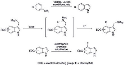 Indoles are prevalent heterocyclic compounds in nature and serve as important precursors for the synthesis of a wide variety of natural products, many of which show pronounced pharmacological effects and potential for clinical application. Our interest is to explore the reactivity of electron-rich indoles. Many methods of indole synthesis were explored, including the classical Fisher and Bartoliís indole synthesis, to evaluate the best synthetic strategy. Both electrophilic as well as nucleophilic methods were utilized for regioselective functionalization. The reactivity of the benzene substructure in indole was investigated via directed metalation and through further deactivating the pyrrole moiety. By exploring the properties of these electron-rich indoles, we can gain insight into their reactivity, which will prove invaluable in future natural product synthesis.