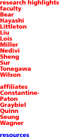 The background and the areas of expertise of the Picower Center's faculty vary widely from molecular and cellular neurobiology to genetics and systems neuroscience. However, all faculty members share an interest in mechanisms of learning and memory, and neural plasticity. While each faculty member has his/her independent research program, interlaboratory interaction are frequent and wide spread including formal collaborations.