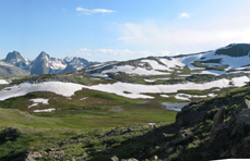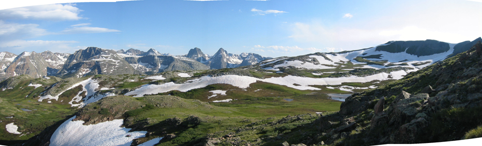 When the Continental Divide Trail wasn't covered in snow, it was pure slop. But it still offered some nice views allong the way to Hunchback Pass (below). |