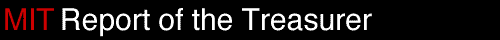The Report of the Treasurer, published in October, is the annual financial statement of the Institute, for the fiscal year ending on June 30. In addition to the treasurer's report, this publication describes the distribution of investment income to funds, and provides a five-year trend analysis as well as financial statements. If you would like a printed copy, send a request to the office of the Treasurer of the Corporation, 238 Main Street, Suite 200, Cambridge, MA 02142-1012, send e-mail, or call (617) 253-4900. The office of the Treasurer of the Corporation is responsible for preparing and publishing this report. |