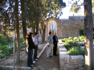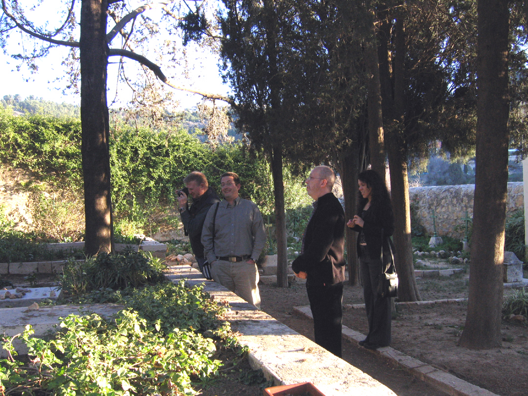 9 (Prof. Dan Gazit, Dr. Gadi Pelled, Dr. Yoram Silberman, C. Ortiz in monastery cemetery)