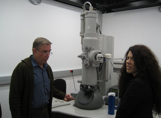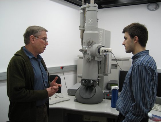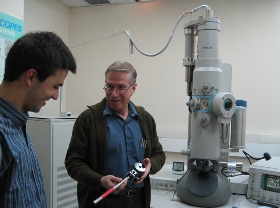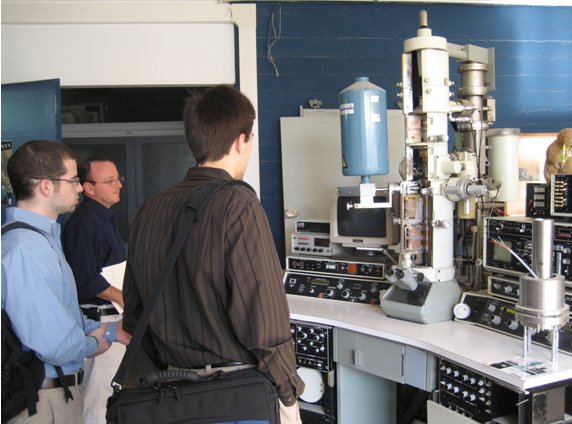 14 (MIT students at exposed old TEM with Prof. Wayne Kaplan, Materials Science)