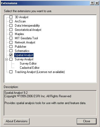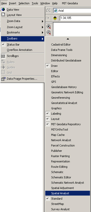Once the Spatial Analyst tool bar is loaded, a new main-menu heading called Spatial Analysis will be available whenever you launch ArcGIS.