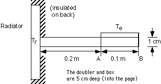 An aluminum (k = 164 w/mK) thermal doubler with the dimensions shown runs