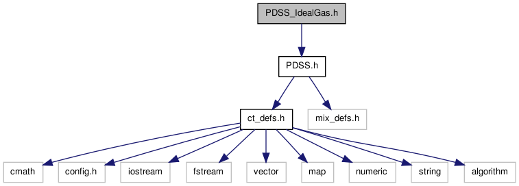 Declarations for the class PDSS_IdealGas (pressure dependent standard state) which handles calculations for a single ideal gas species in a phase (see Species Standard-State Thermodynamic Properties and class PDSS_IdealGas).