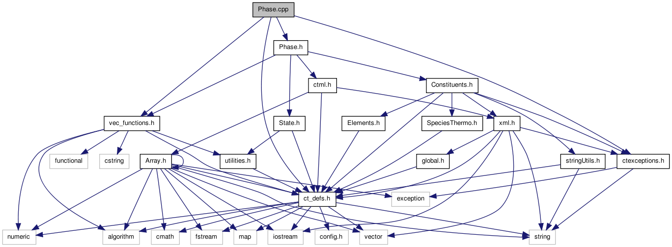 Definition file for class, Phase, which contains functions for setting the state of a phase, and for referencing species by name (see Models of Phases of Matter and class Phase).