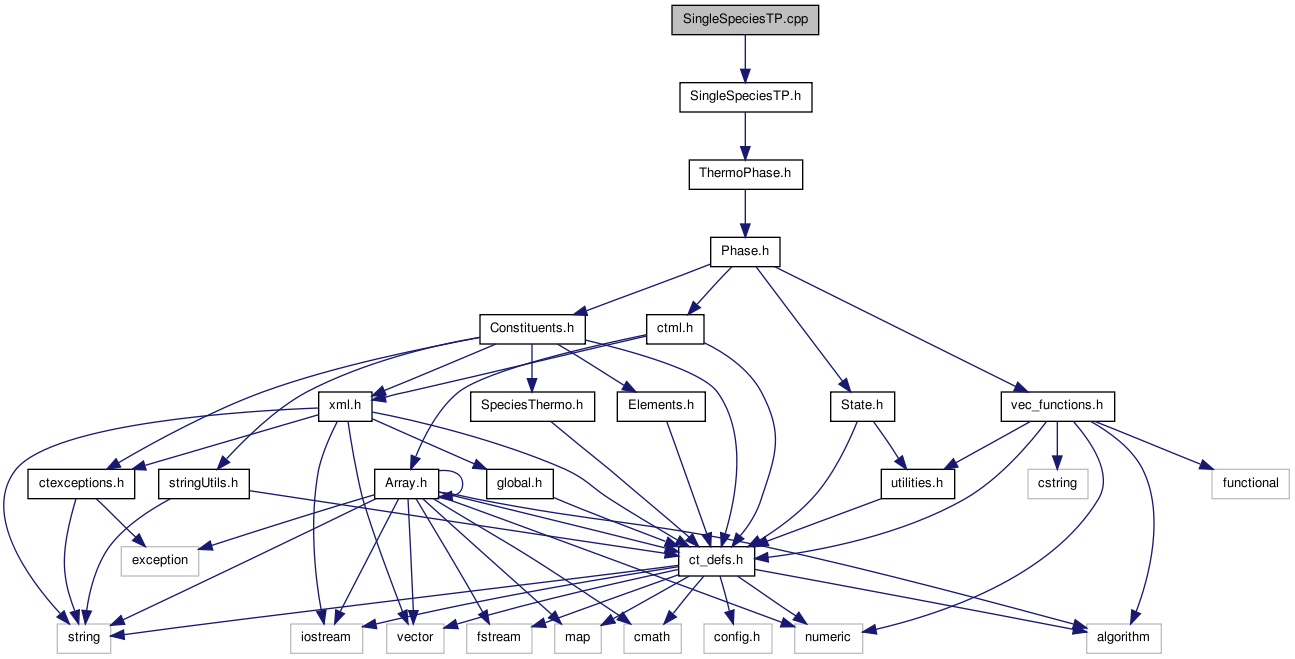 Definitions for the SingleSpeciesTP class, which is a filter class for ThermoPhase, that eases the construction of single species phases ( see Thermodynamic Properties and class SingleSpeciesTP). More...