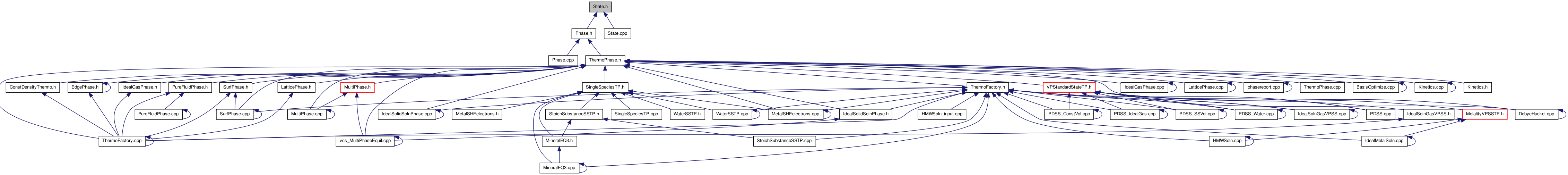 Header for the class State, that manages the independent variables of temperature, mass density, and species mass/mole fraction that define the thermodynamic state (see Models of Phases of Matter and class State). More...