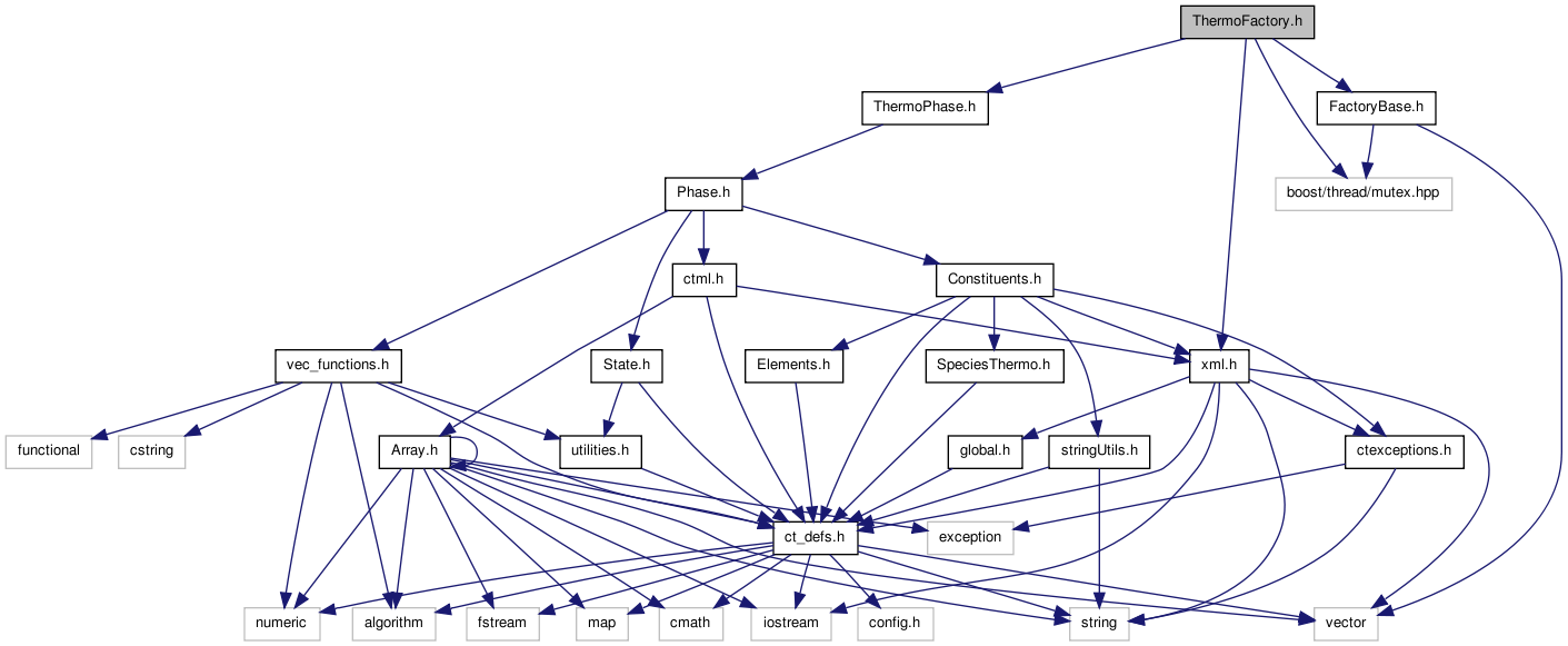 Headers for the factory class that can create known ThermoPhase objects (see Thermodynamic Properties and class ThermoFactory).