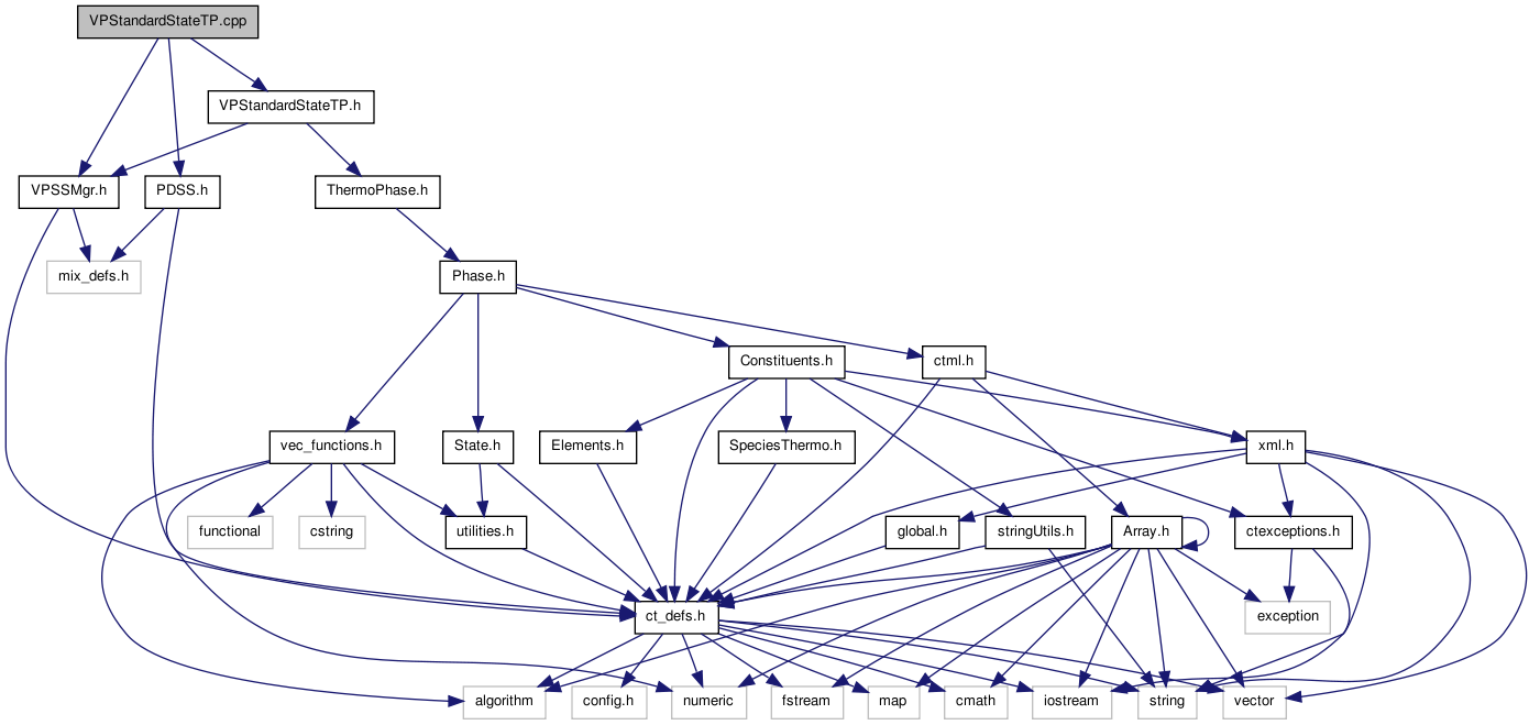 Definition file for a derived class of ThermoPhase that handles variable pressure standard state methods for calculating thermodynamic properties (see Thermodynamic Properties and class VPStandardStateTP). More...