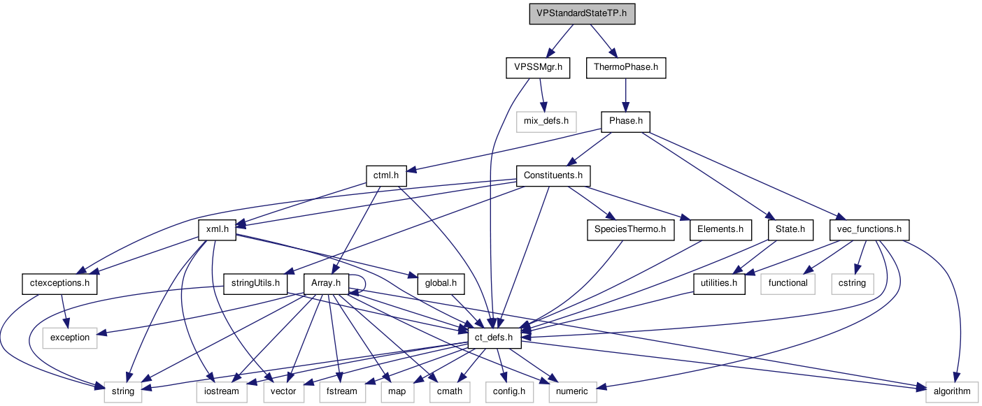 Header file for a derived class of ThermoPhase that handles variable pressure standard state methods for calculating thermodynamic properties (see Thermodynamic Properties and class VPStandardStateTP).
