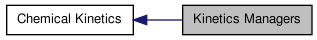 A kinetics manager computes reaction rates of progress, species production rates, equilibrium constants, and similar quantities for a reaction mechanism. All kinetics manager classes derive from class Kinetics, which defines a common public interface for all kinetics managers. Each derived class overloads the virtual methods of Kinetics to implement a particular kinetics model.