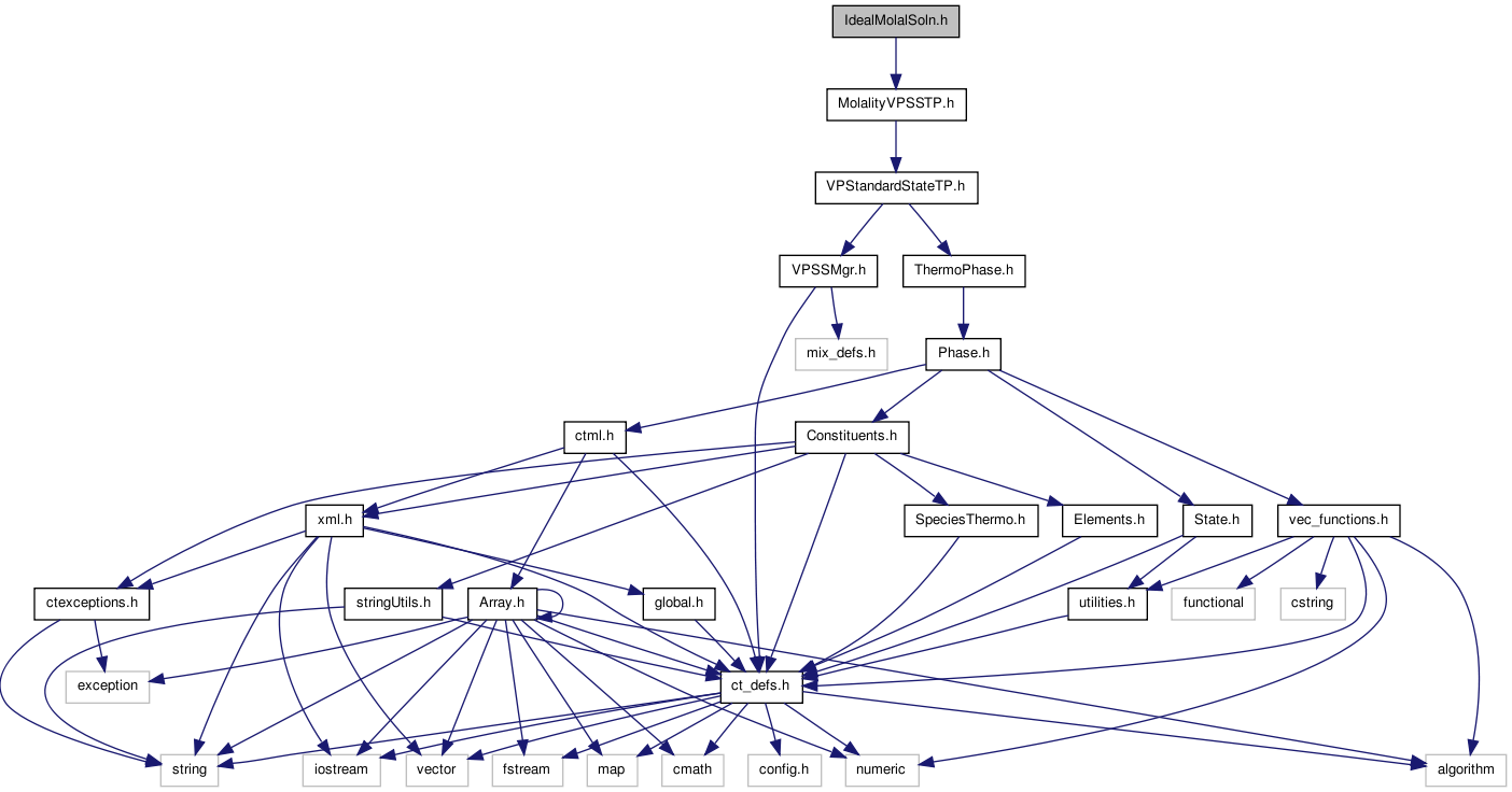 Header file for a derived class of ThermoPhase that handles variable pressure standard state methods for calculating thermodynamic properties that are further based upon activities on the molality scale. The Ideal molal solution assumes that all molality-based activity coefficients are equal to one. This turns out to be highly nonlinear in the limit of the solvent mole fraction going to zero.