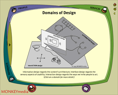 2. The shared node provides navigation to all contexts in which it resides via the multi-tiled windows, which are links to the contexts ("Services", "References" and "Profile").