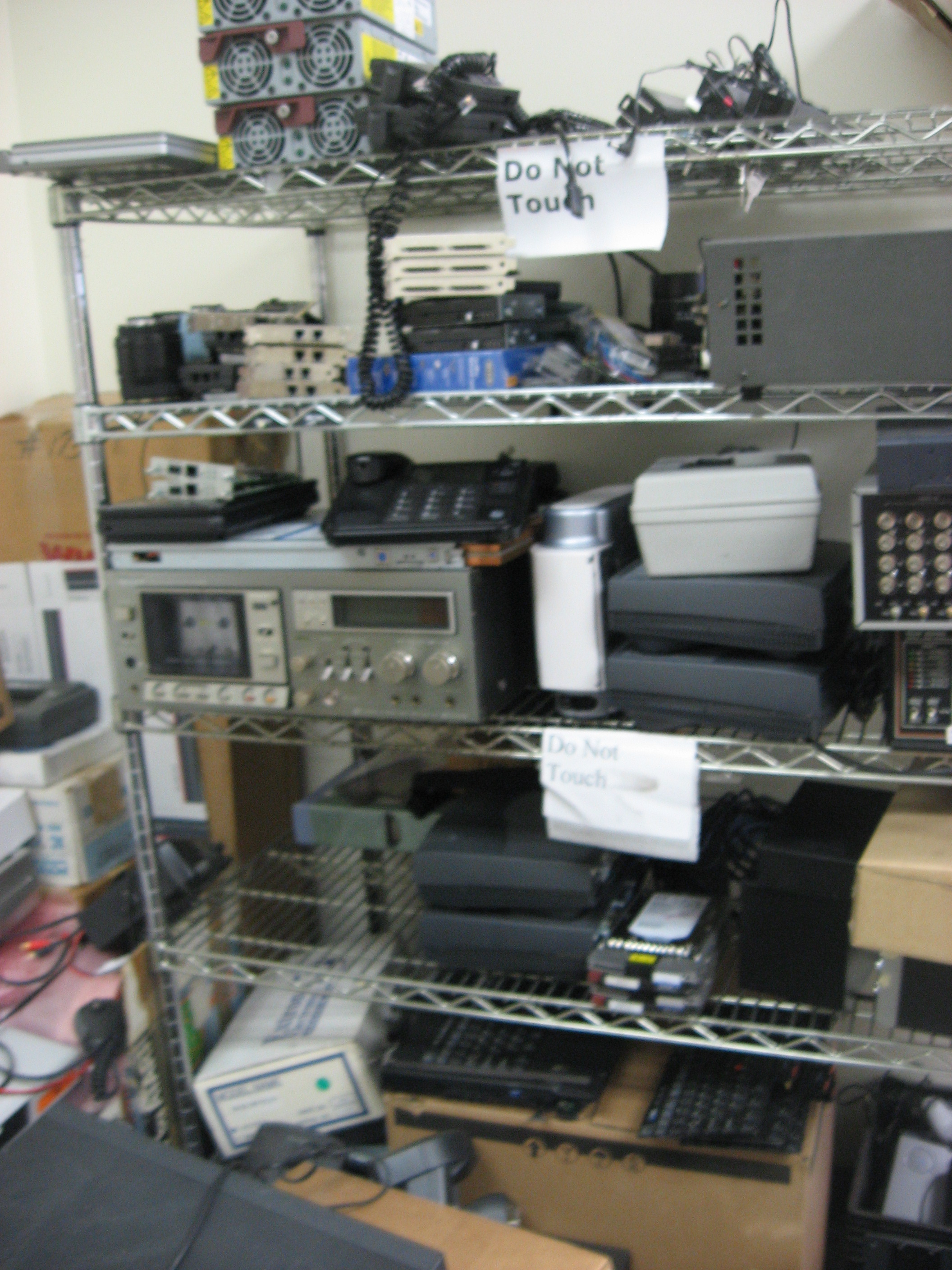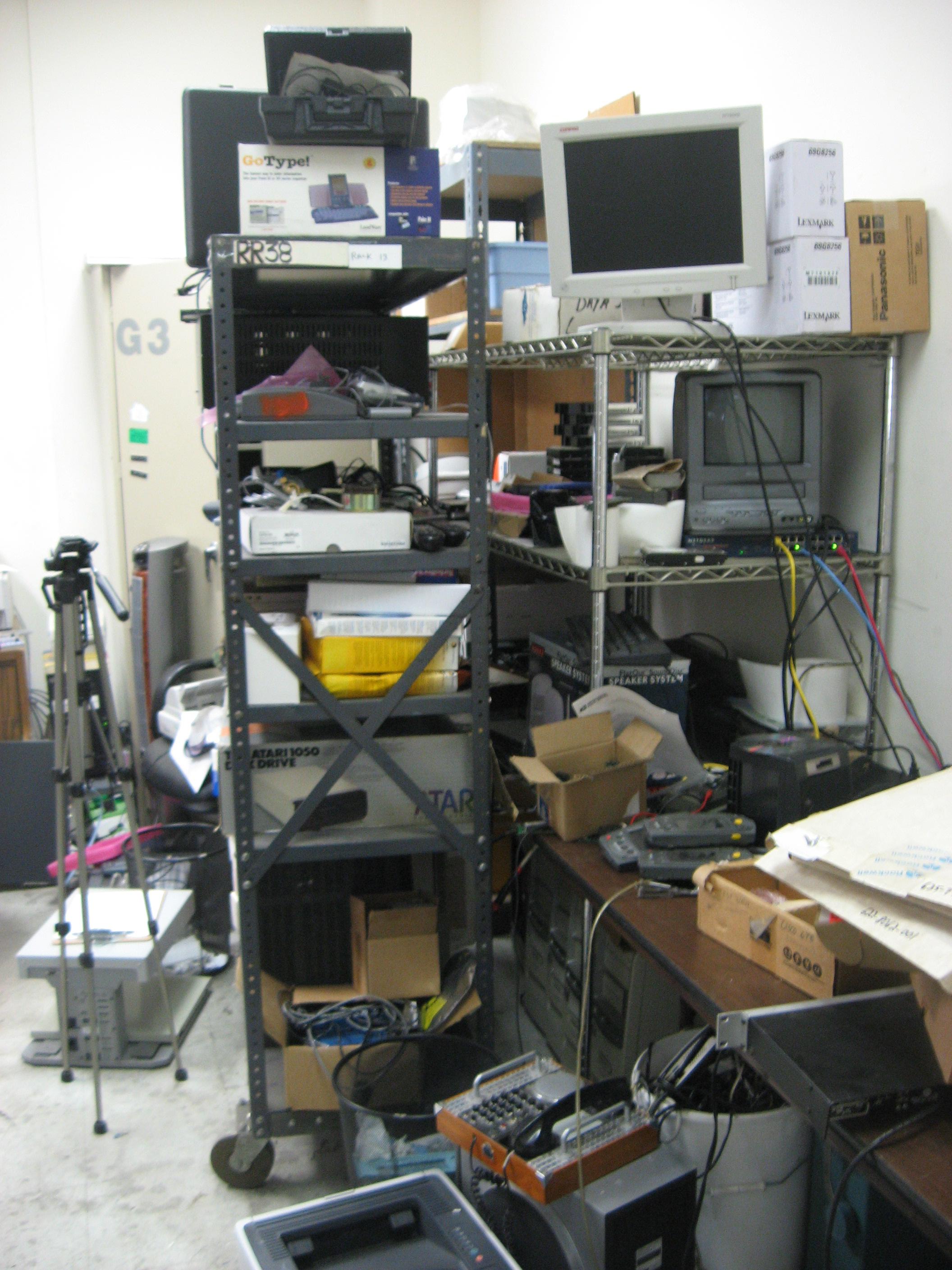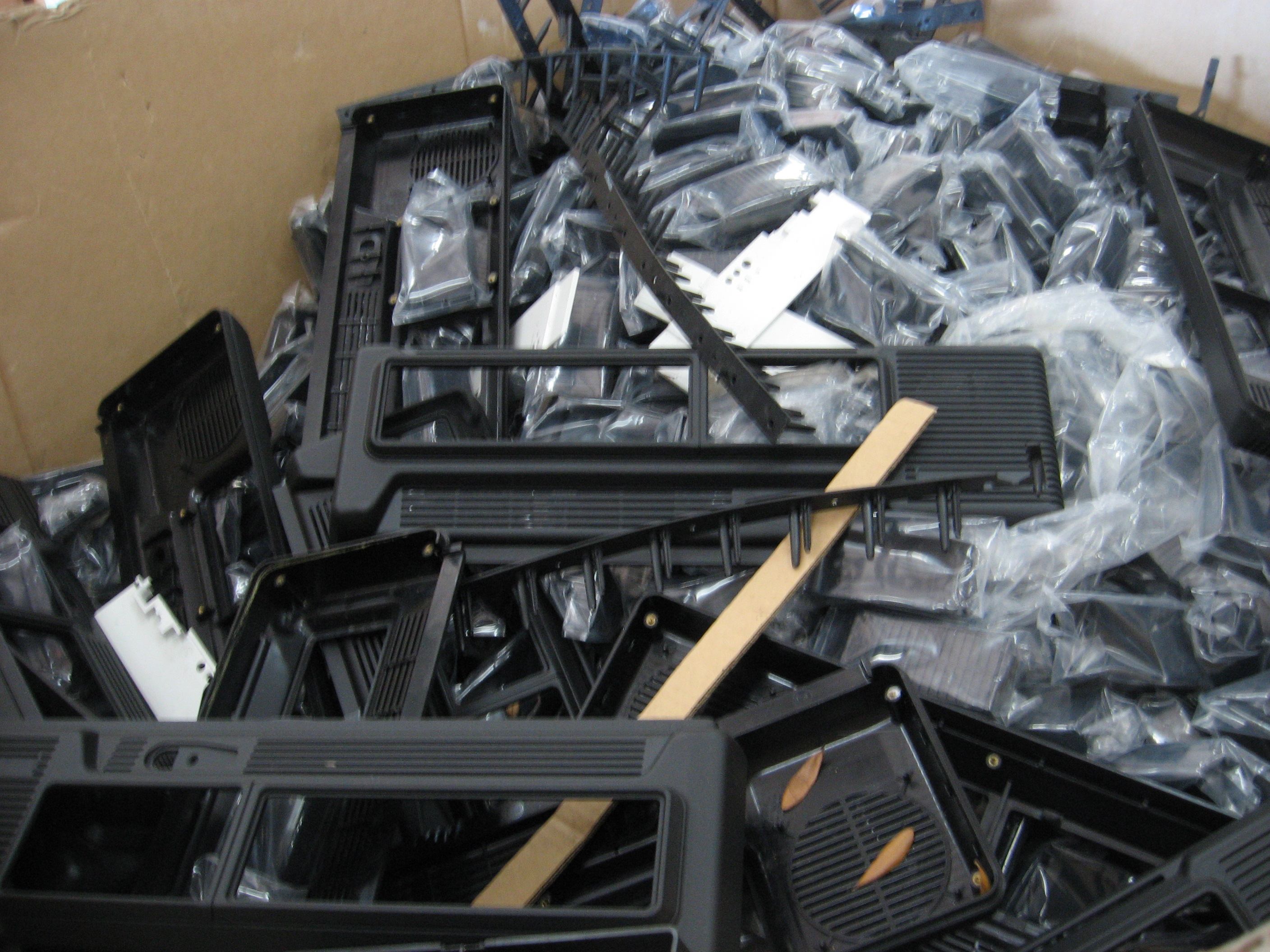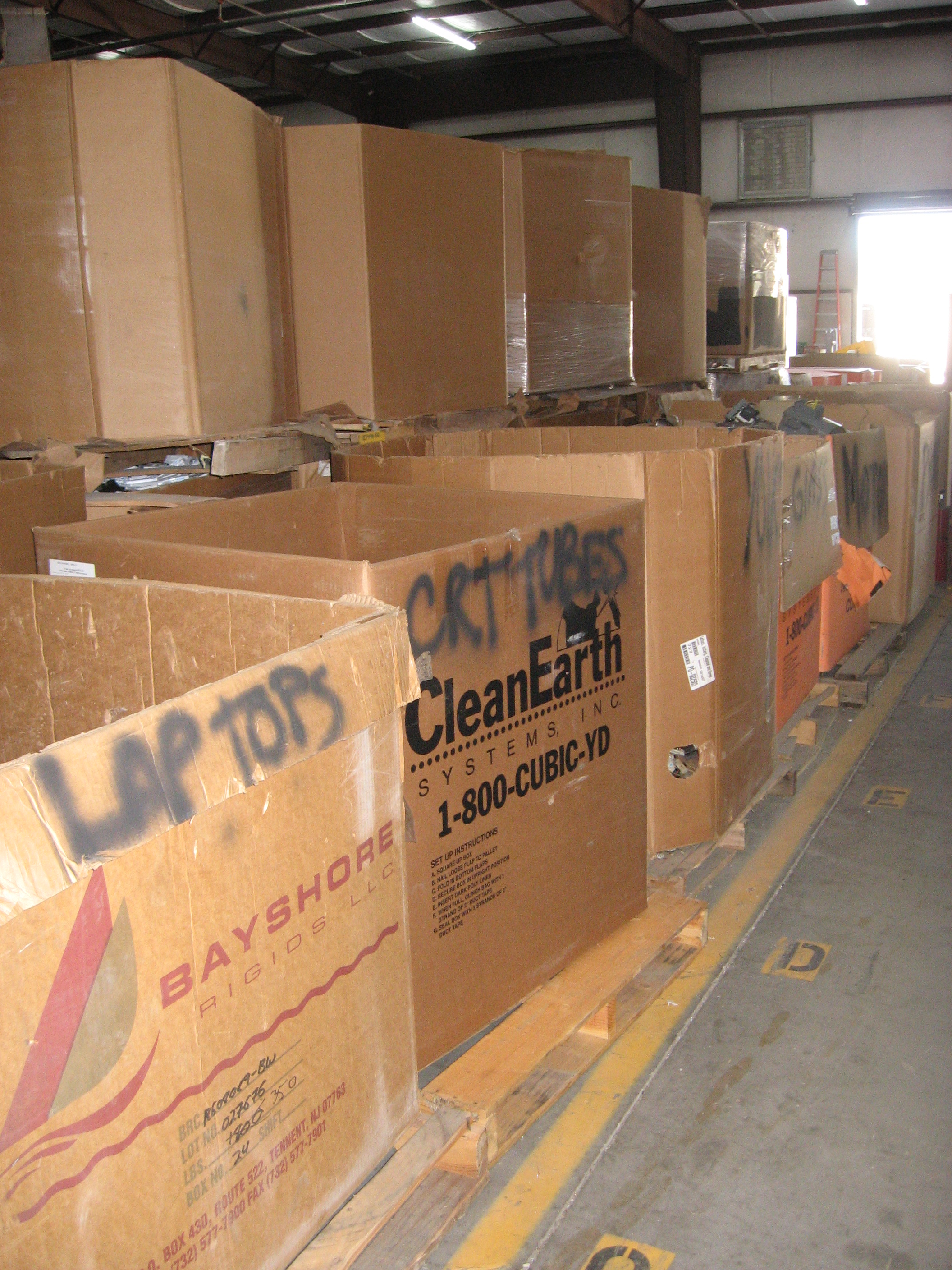 Boxes wit sorted eWaste waiting to be decomposed into chips, yokes, PCB...