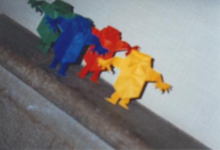Phil's origami Frankensteins maraud across the mantelpiece.