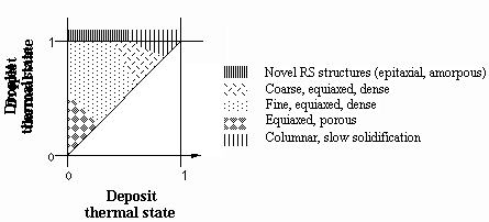 (3) Porosity either within or on the surface of the deposit can be reduced or eliminated by spraying high liquid fraction droplets onto a sufficiently high hot deposition surface. However, the substrate temperature cannot be so high as to cause neighboring splats to merge. This will degrade lamination uniformity.