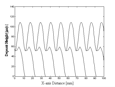 (2) The surface flatness and uniformity of laminations can be improved by selecting the proper mass flux distribution and by increasing the degree of deposit overlap between adjacent path segments and between layers.