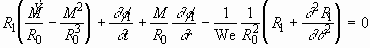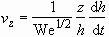 The original droplet radius and velocity are both unity after nondimensionalization.