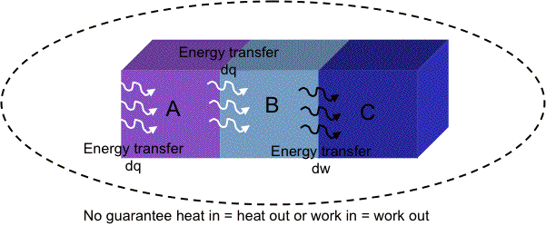 destroyed, it is passed to its surroundings. The first law of thermodynamics