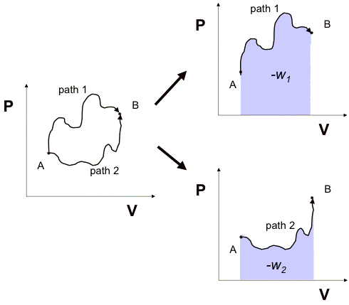 material is under and itıs volume. I do this to change from a state A (P1, V1) to state B (P2, V2) by two different