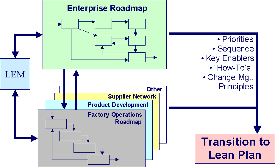 The Lean Aerospace Initiative (LAI) Lean Enterprise Model (LEM) provides a taxonomy of lean practices, metrics and supporting data. The LEM is serving as an invaluable tool to guide both industry and government LAI consortium members in their journey towards "lean". However, the LEM does not adequately address members? needs for more information on "how-to" become lean. Nor does it provide guidance on the appropriate order or sequence in which to effectively implement the lean practices.
