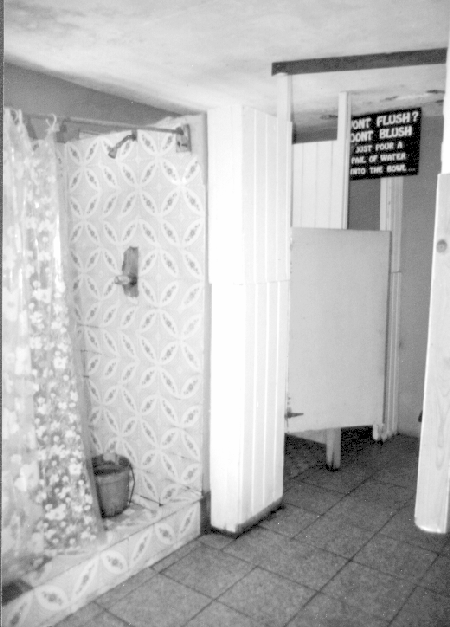 It's rather grimy, even on third world standards. If you have to use the john at night, you might get to experience a two inch cockroach running across your toes. There's only cold water showers. But all in all, if you can stomach the bathrooms, you'll love your experience there.