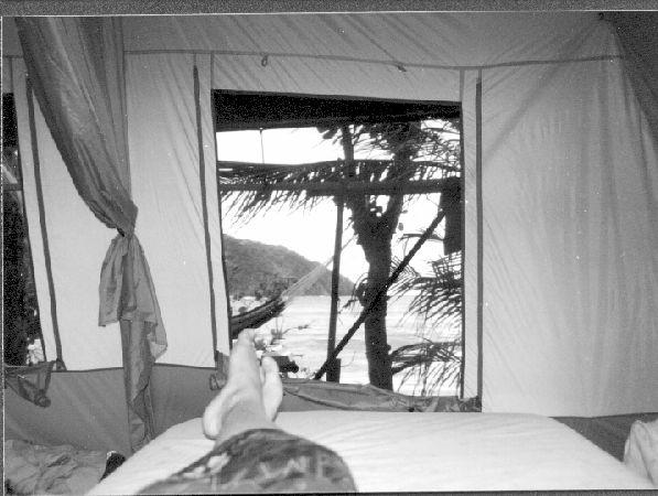 The rates are $8.00 a night if you bring all your own equipment or $35 a night if they supply everything, including a tent (2 to 3 room), tarp, mattresses, sheets, dishes, cookstove, gas lantern, table, chairs, and water jug. Here are some pictures of a typical site: