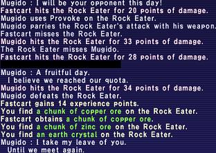 July 21st to 22nd, 2005 - Next day, I set off to exp with him again. I arrived at camp and used the earring. I engaged the first mob, but Mugido wouldn't engage because I was too far away. So, I ran to the mob and got a hit in. Then...R0...