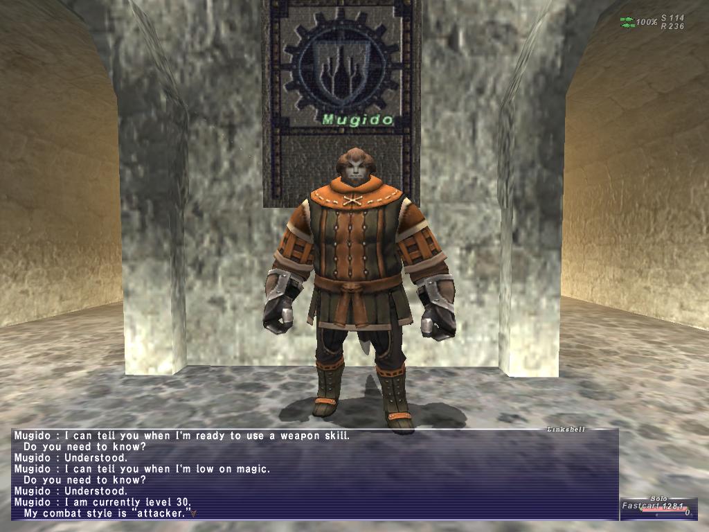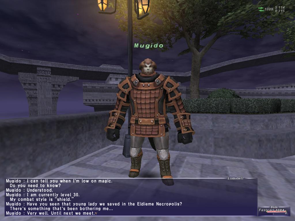 First, I took Mugido out to Konschtat Highlands with my level 15 Red Mage because I was under the mistaken impression NPCs only get xp if we do. He Provoked seemingly every 30 seconds and parried like a man possessed when he tanked. We only killed easy preys and got 300 xp. When he disappeared after the 15th worm, imagine my surprise. I thought NPCs were time based and he was only out for ten minutes.