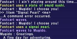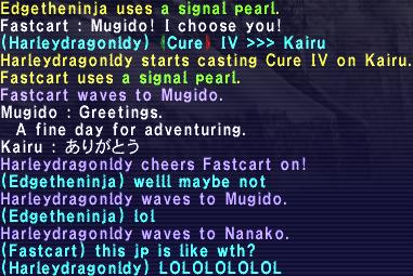 Mugido is down... !!! ??? Medic!! Someone call the 911 Linkshell!! Anyone know CPR?? Get the paddles!! Give him a NPC Raise!! ... My kingdom for a Phoenix Down!!!!! ... I failed him!! Mugido was the chosen one, but the demons had the high ground!! /em sobs with huge anime tears...