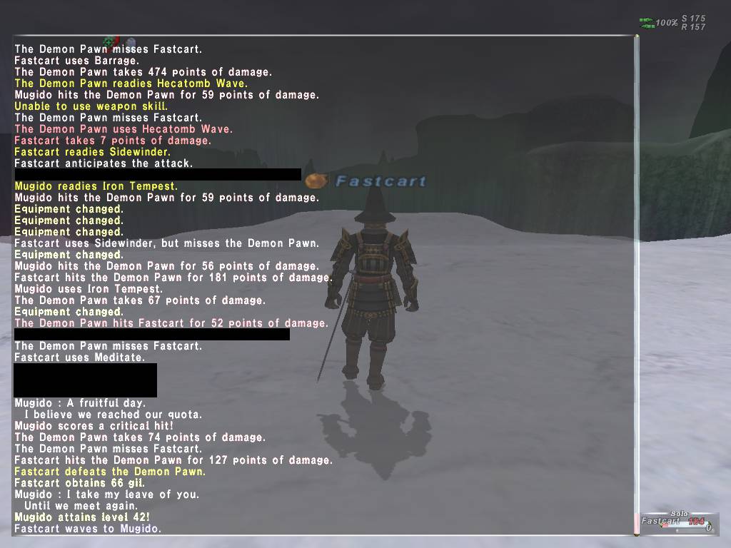 If I hadn't missed either the Demon Wizard or Demon Pawn with my first swing, all would be right... /em sulks and decides not to get another pearl... It's okay. I'll be fine... Really... /em blows his nose on a random Tarutaru.