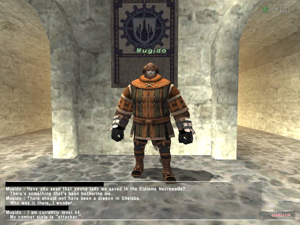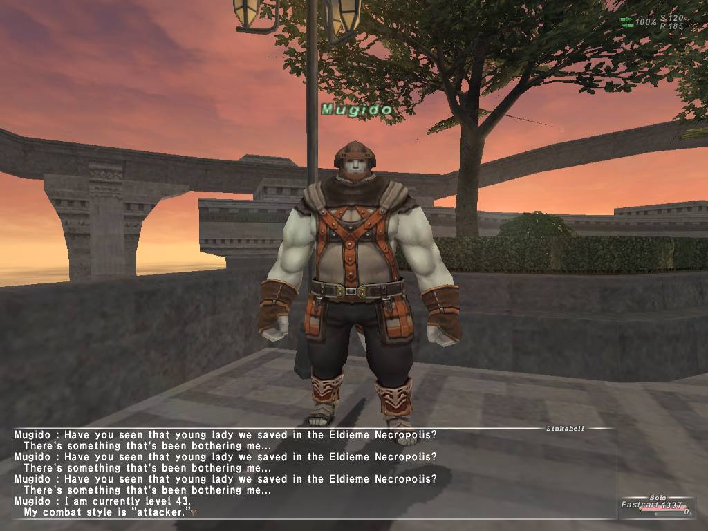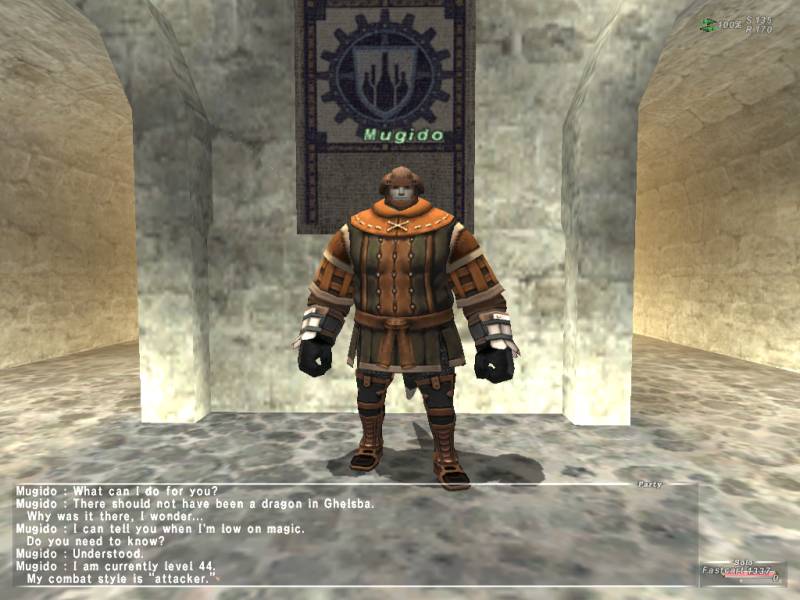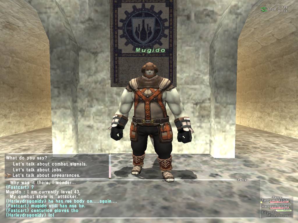 While we were there, we ran into a family member of Mugido's, his cousin Guddal, I.M. Do not confuse him with the Guddal you see at the Kazham Airship Agency in Port Jeuno. That's a different Guddal...