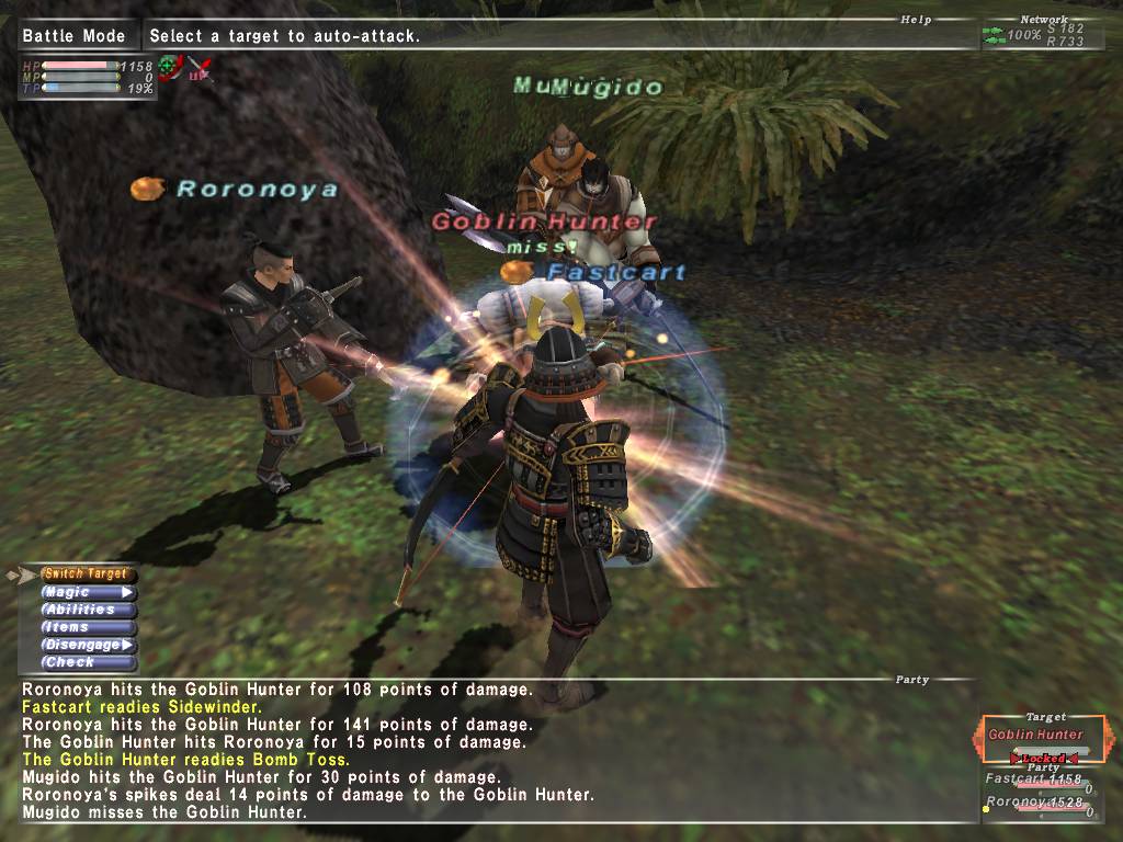 We had to take a rest after the fifth goblin because they were being bomb happy. Roronoya's NPC wouldn't have survived another bomb. SE needs to give us Spirit Link or something... No...wait... Bad idea because that could get the PC killed. ;; Even worse is that our NPCs could sprout wings, shrink, turn blue, and develop bad breath. Even worst still is that everyone with NPCs could suddenly become unwanted party members... /em shudders...