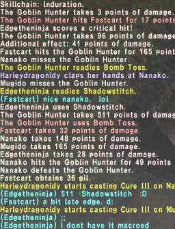 Our NPCs were on the ball today. They kept skill chaining before or after Edge or me. The examples are above. Even the blond Nanako was on the ball. Only Edge was off with his badly timed Shadowstitch. Shame on you, Edge. Your NPC is gonna replace you if you're not careful. Harl even told Edge that he was fired. ^^