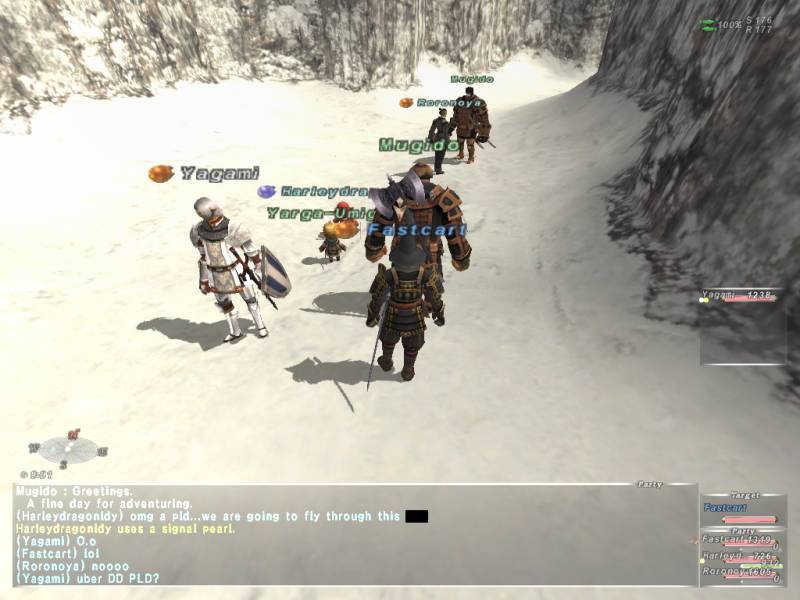 Anyway, I decided to bring the big guns with Edge being unavailable today. Roronoya, who is a Mnk 75, makes a return appearance. And, making his debut is Yagami who is a...err...Pld 65... Don't laugh... Ever seen a Pld use Berserk? 'Nuf said... In any case, both Roronoya and Yagami are part of the Salvation Linkshell with me. I've been helping them level their NPC and they decided to return the favor. Okay, okay. I kind of drafted them... ;;