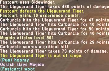 Ladies and gentlemen (and everyone else), I present to you Mugido who has attained level 50!! /praise As you can see, Ocrash was still annoyed with him. ^^