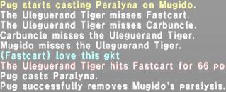 I thought PCs weren't able to cast status removal spells on NPCs, but Pug did. Strange. Oh. The Great Katana that I love is the Soboro Sukehiro. I just got it last night. It's a great toy. I'm able to do skill chains by myself with it. Thanks KoolAid!!