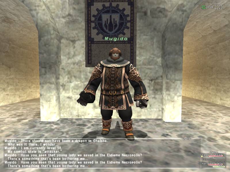It took awhile for him to say it, but I learned why Ocrash was annoyed with Mugido after a few fights of him growling and hissing at Mugido. Leveling an NPC everyday, I guess I'm use to seeing mismatched gear. To others who don't, I can understand why Mugido's gear would be an eyesore. ^^